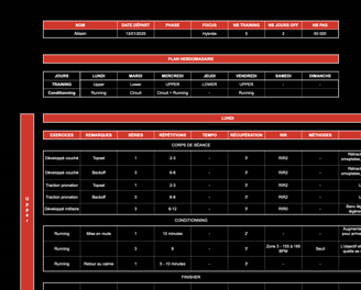 - Inclut les bases du powerlifting : squat, développé couché, soulevé de terre